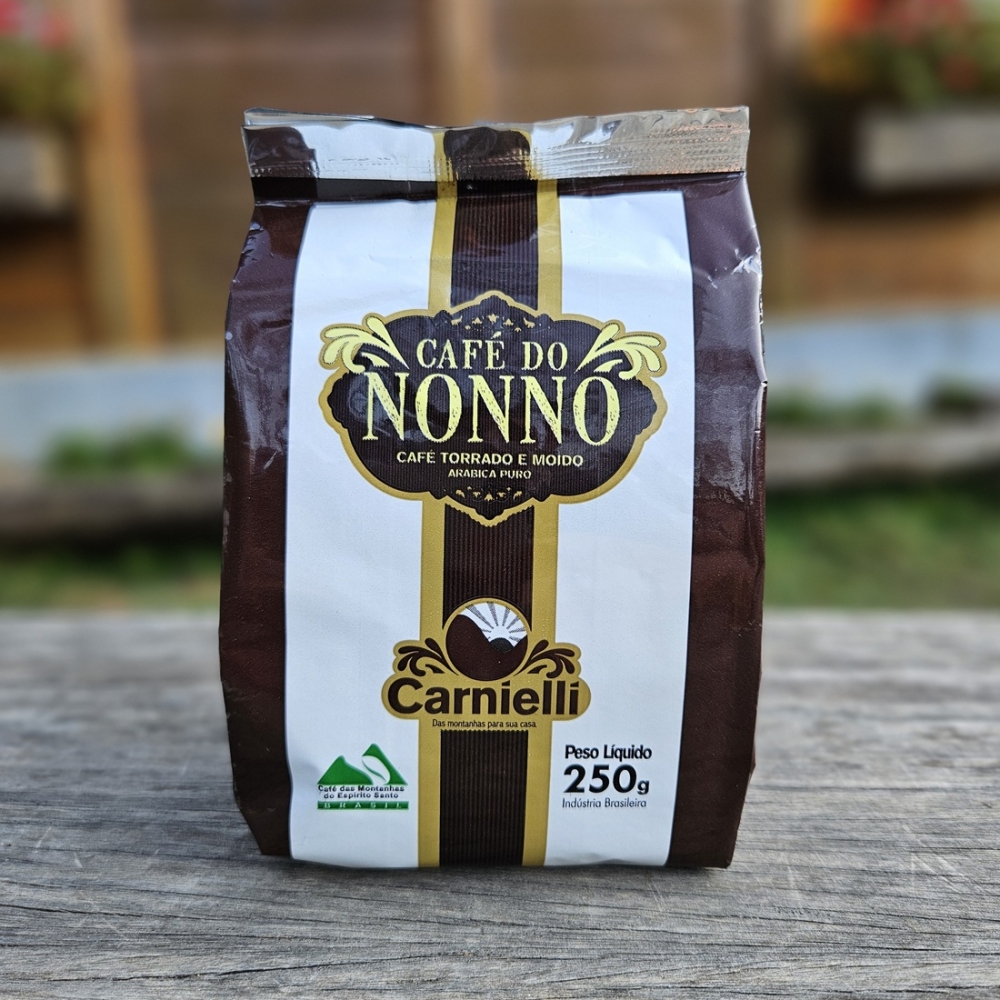 Café do Nonno Carnielli, 100% arábica, torrado e moído com moagem fina.