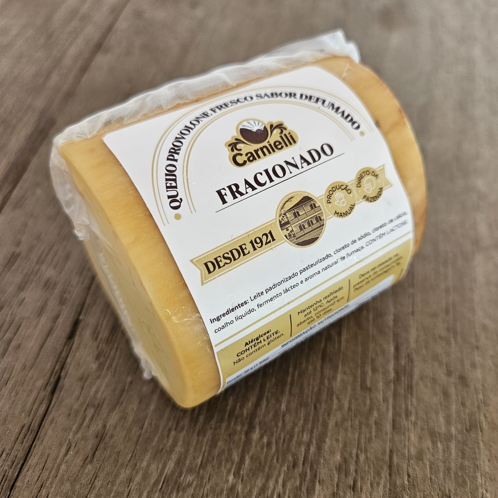 Queijo de origem italiana, é um dos mais conhecidos em todo mundo. No Brasil é tradicionalmente defumado com sabor variando do picante (mais maturado) ao doce (fresco). O Provolone Carnielli se destaca por ter uma massa mais fresca e macia. Fração com no mínimo 300g.